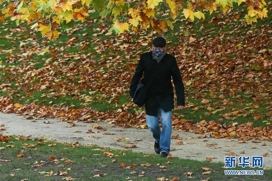 10月26日,一名男子走在比利時布魯塞爾的五十周年紀念公園里。 比利時國家公共衛生研究所26日發布的新冠疫情數據顯示,該國近兩周日均新增確診病例10579.2例,目前累計確診病例達321031例。 新華社記者 鄭煥松 攝