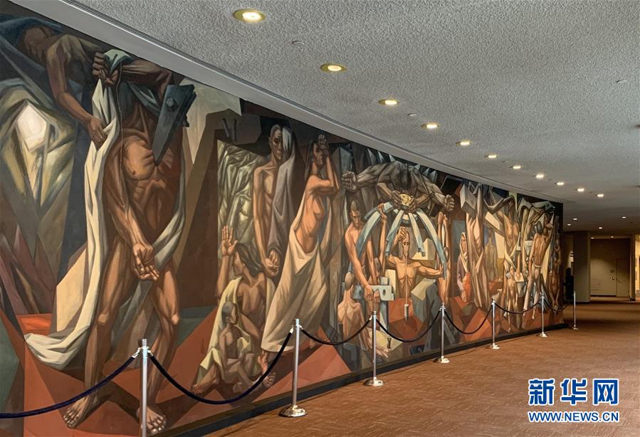 這是10月27日在紐約拍攝的聯合國總部空曠的走廊。新華社記者 王建剛 攝