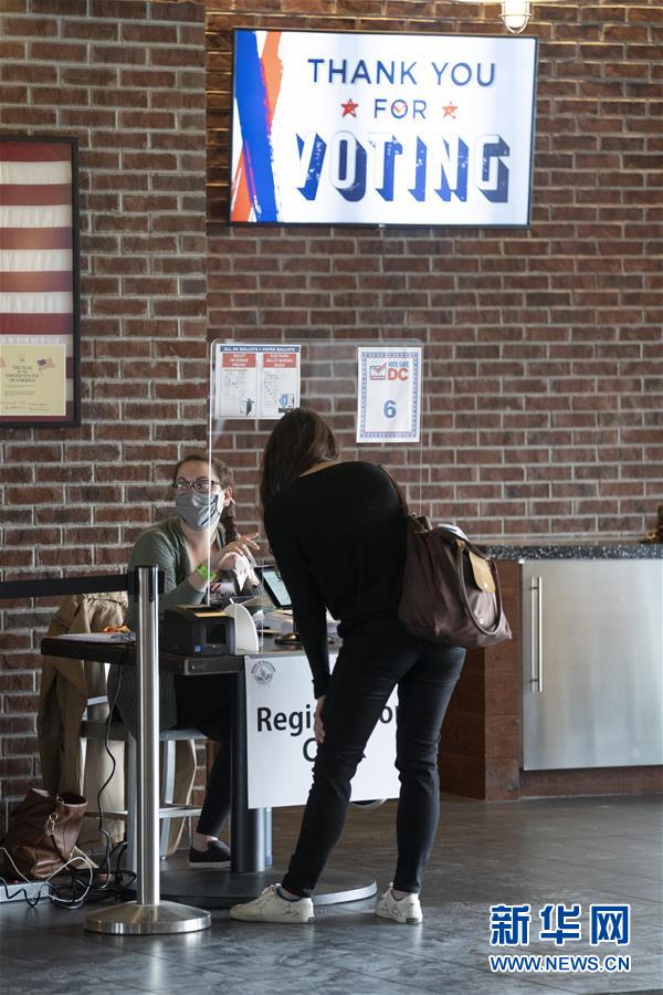 10月28日,選民在美國華盛頓一處投票站登記。 當日,華盛頓2020美國大選提前投票進入第二天。美國大選投票日是11月3日,但多地已經開始提前投票。 新華社記者 劉杰 攝