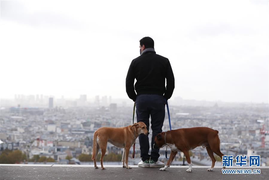 10月28日,一名男子在法國巴黎蒙馬特高地遛狗。 法國總統(tǒng)馬克龍28日在電視講話中宣布,為遏制新冠疫情蔓延,法國將從30日起再度全國“封城”。餐館、酒吧等非生活必需的營業(yè)場所將關(guān)閉,民眾的非必要出行將被禁止,大學(xué)將關(guān)閉并進(jìn)行網(wǎng)絡(luò)授課,政府鼓勵企業(yè)遠(yuǎn)程辦公。 新華社記者 高靜 攝