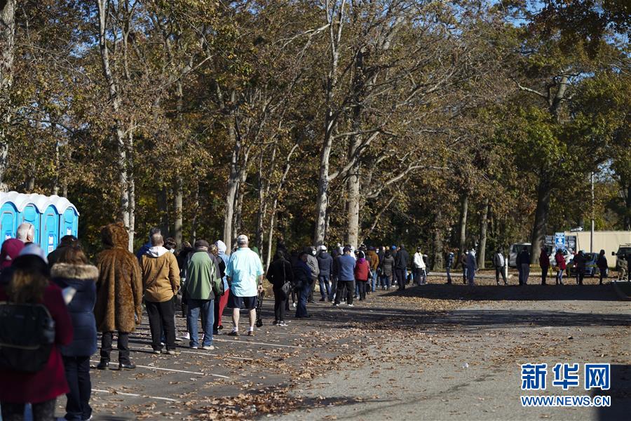10月31日,在美國紐約州長島的一個投票站外,參加提前投票的選民排起長隊。