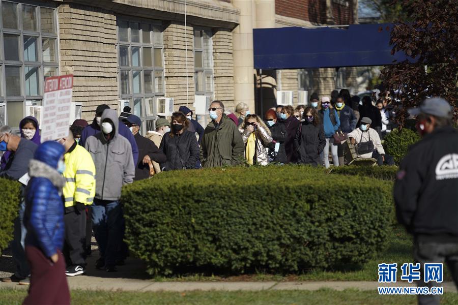 10月31日,在美國紐約州長島的一個投票站外,參加提前投票的選民排起長隊。 當天,紐約州2020美國大選提前投票進入第八天。紐約州2020美國大選提前投票從10月24日開始,至11月1日結束。 新華社記者 王迎 攝