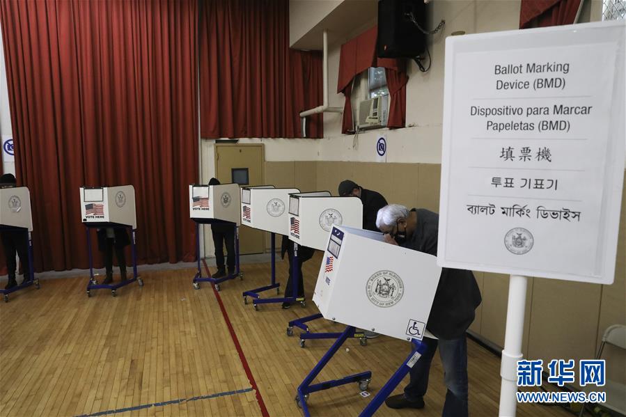 11月1日,選民在美國紐約一個投票站參加提前投票。 當日,為期9天的紐約州2020美國大選提前投票結束。 新華社記者 王迎 攝