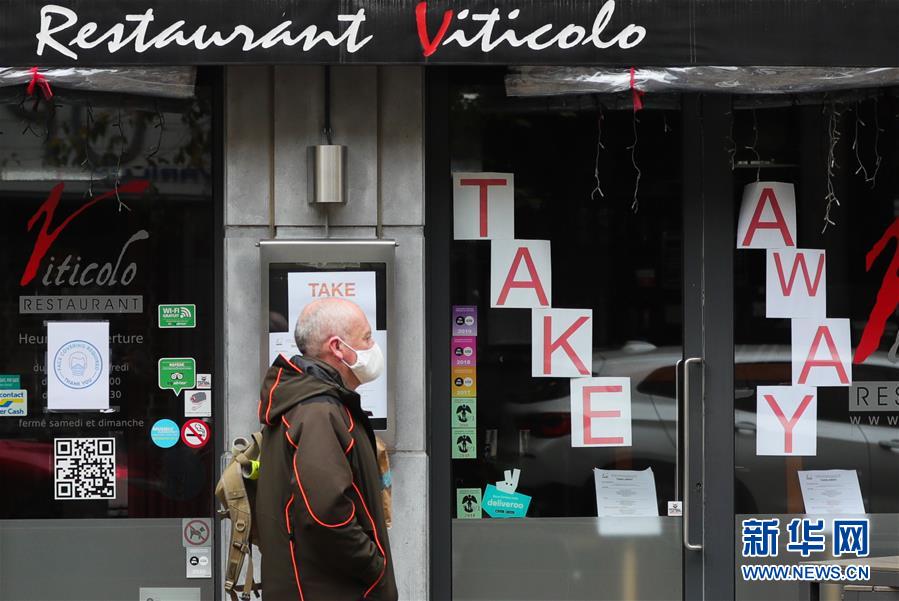 11月2日,一名男子經過比利時布魯塞爾一家只提供外賣的餐館。 從11月2日零時起,比利時全國開始實施新一輪更嚴厲的新冠防控措施,包括所有“非必需品”商店關門、居家辦公由強烈建議升級為強制、一個家庭能接待的訪客人數由4人減至1人、學校的秋假延長至11月15日等。新措施將持續至12月13日。 新華社記者 鄭煥松 攝 |