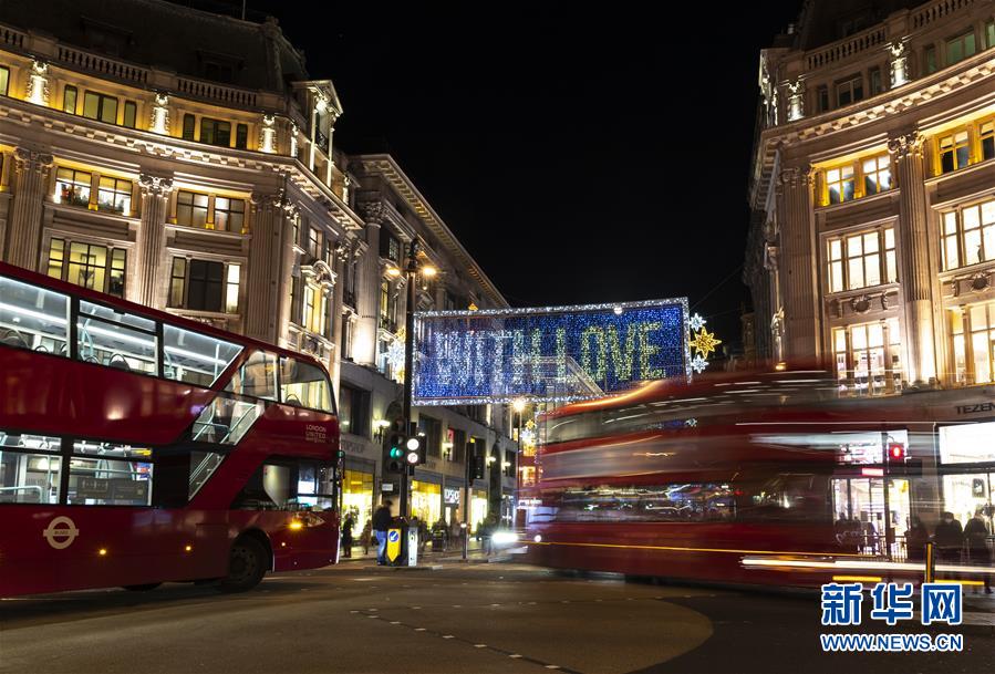 英國倫敦牛津街2日點亮一年一度的圣誕節日彩燈,今年的主題是號召人們團結抗疫,并向抗疫英雄致敬。 新華社記者 韓巖 攝
