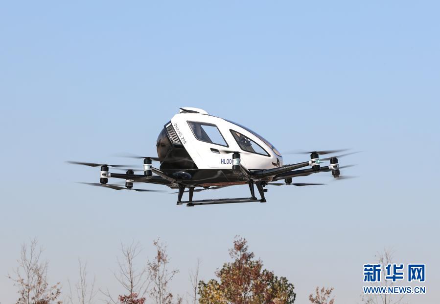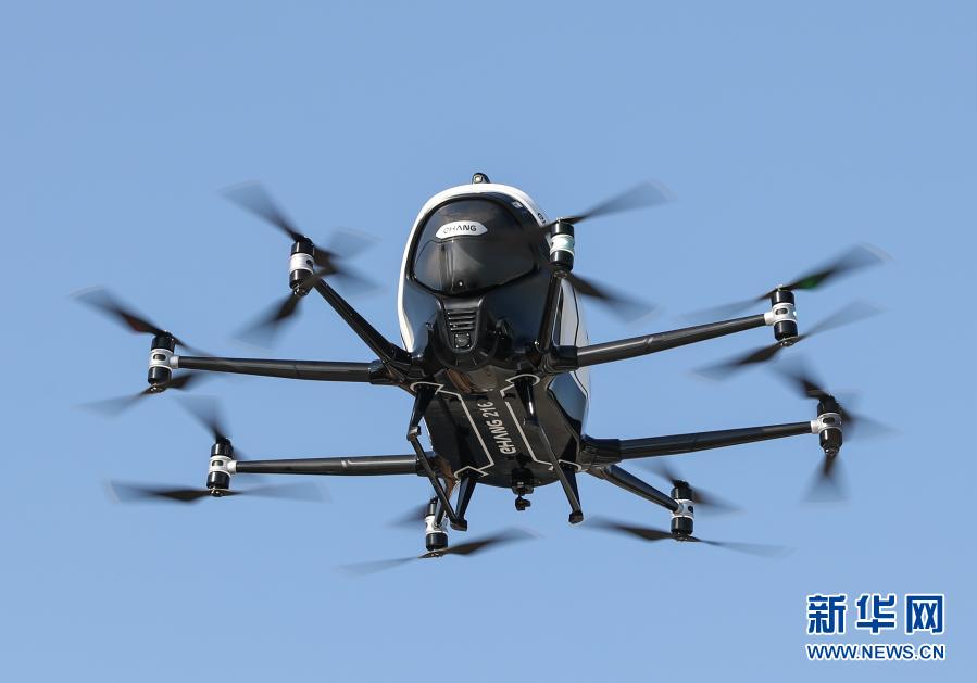 11月11日,在韓國首爾汝矣島漢江公園,中國億航智能技術(shù)有限公司研發(fā)的雙座自動駕駛飛行器“EH216”在空中進行展示。韓國首爾市政府11日在首爾汝矣島上空開展了“空中出租車”無人試飛活動。一款中國研制的自動駕駛飛行器參加試飛。新華社記者 王婧嬙 攝