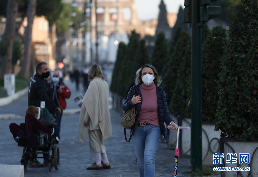11月10日,在意大利首都羅馬,一名女子戴著口罩走在街頭。新華社記者程婷婷攝