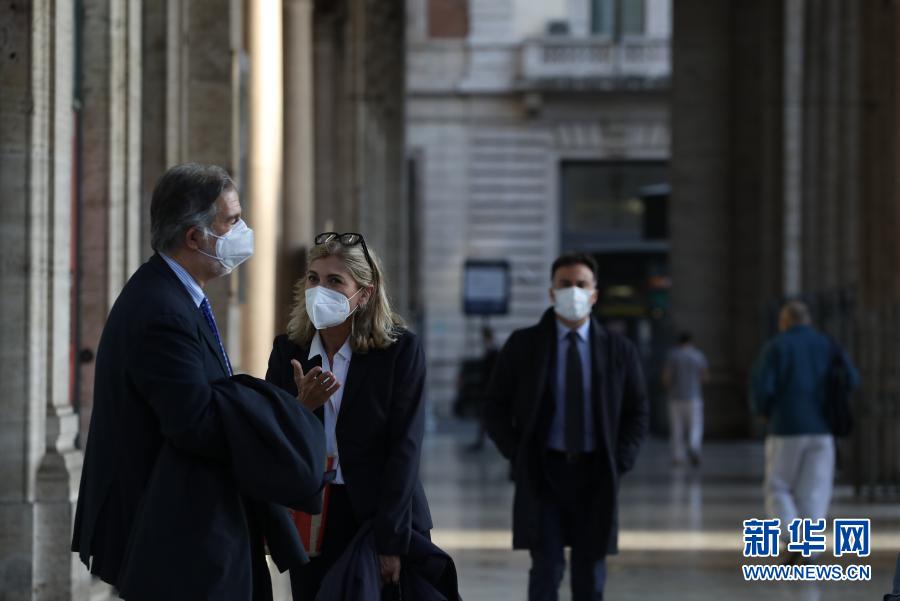 11月10日,在意大利首都羅馬,人們戴著口罩在街頭交談。新華社記者程婷婷攝 |