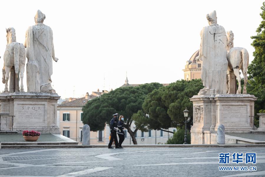 11月10日,在意大利首都羅馬,警察戴著口罩執勤。新華社記者程婷婷攝
