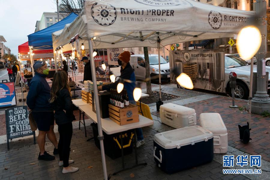 11月12日,人們在美國華盛頓的一處戶外市場購物。世界衛生組織13日公布的最新數據顯示,全球累計新冠確診病例達52487476例。新華社記者 劉杰 攝
