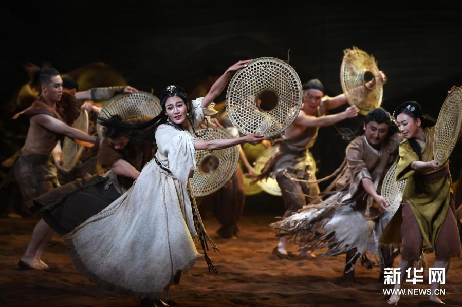 11月14日晚,演員在蘭州市黃河劇院表演舞劇《問道崆峒》。新華社記者 陳斌 攝