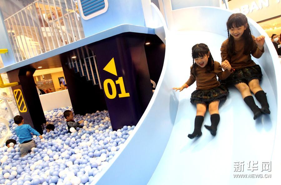 11月14日,小朋友在“熊出沒(méi)”主題展現(xiàn)場(chǎng)游玩。新華社記者 陳飛 攝