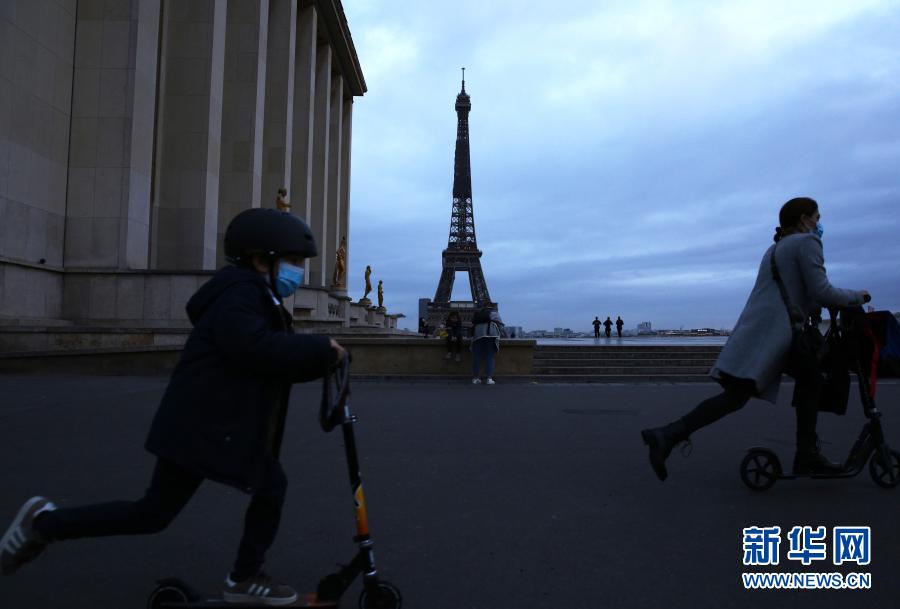 11月16日,人們經過法國巴黎埃菲爾鐵塔附近的特羅卡德羅廣場。
