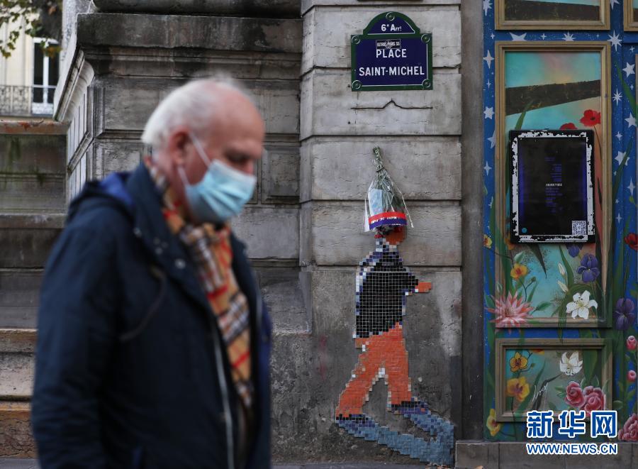 11月16日,一名男子走過法國巴黎圣米歇爾廣場。新華社記者 高靜 攝