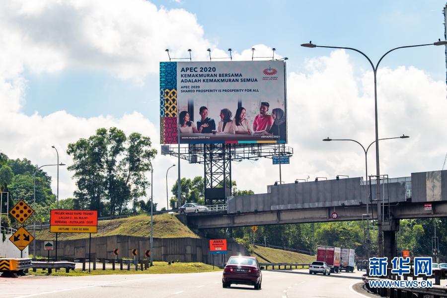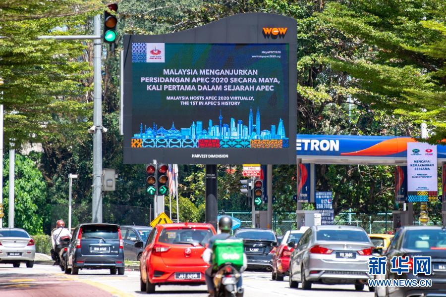 這是11月18日在馬來西亞吉隆坡拍攝的亞太經濟合作組織會議宣傳牌。 馬來西亞將于11月20日以視頻方式舉辦2020年亞太經濟合作組織領導人非正式會議。 新華社記者 朱煒 攝
