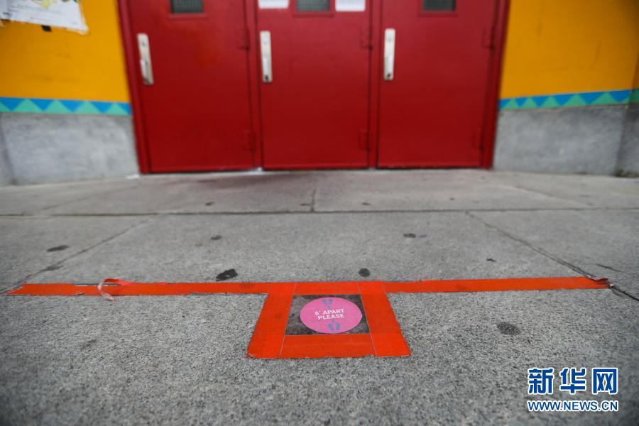 11月19日,在美國紐約,一所公立學校的入口貼有保持距離的提示。紐約市長德布拉西奧18日宣布,紐約市公立學校19日起暫停線下授課,改為在線教學。新華社記者王迎攝 |