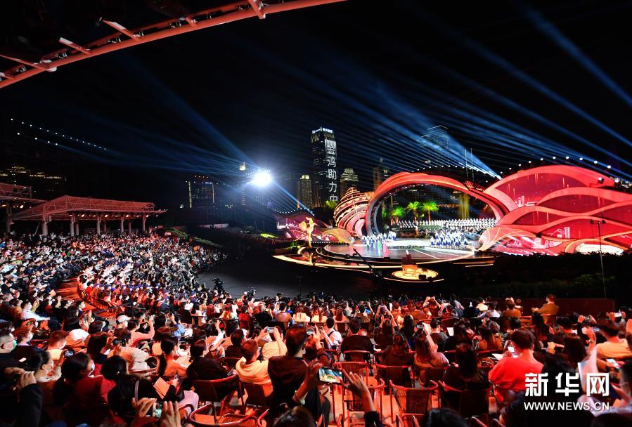 11月25日,在第33屆中國電影金雞獎電影音樂會暨開幕式現場,演員在表演《大海啊故鄉》。當晚,第33屆中國電影金雞獎電影音樂會暨開幕式在廈門白鷺洲公園舉行。新華社記者 魏培全 攝