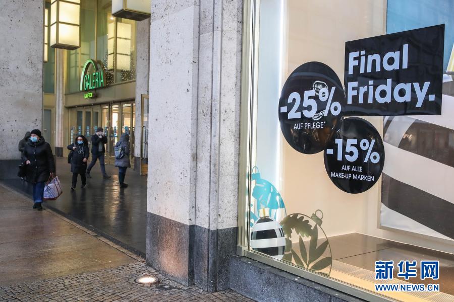 11月26日,在德國首都柏林,人們進出一家購物中心。
