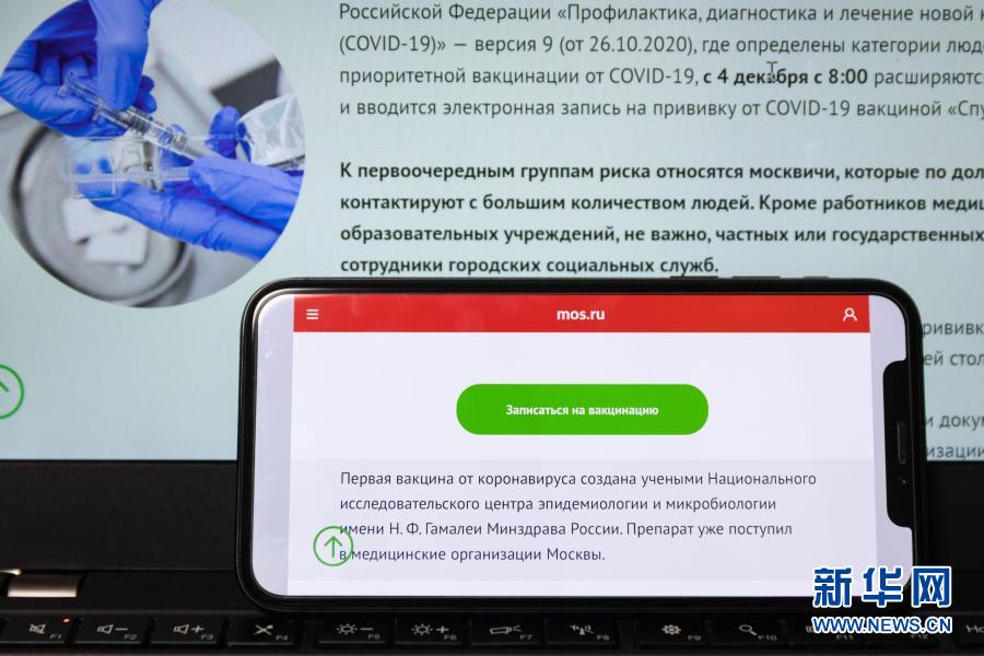這是12月4日在俄羅斯首都莫斯科拍攝的莫斯科市民新冠疫苗接種電子申請系統頁面。新華社記者 白雪騏 攝