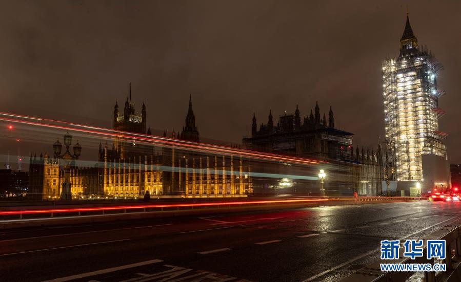 12月23日,車輛從英國倫敦的議會大廈前駛過。