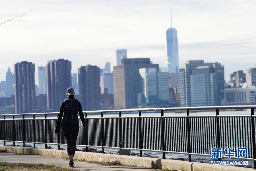 1月9日,在美國紐約,一名女子在東河河畔散步。