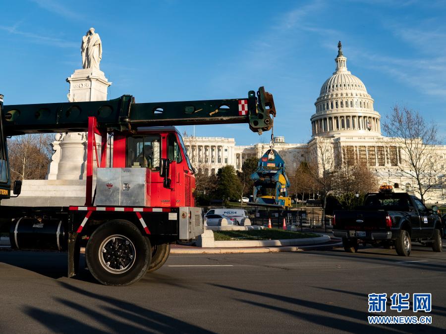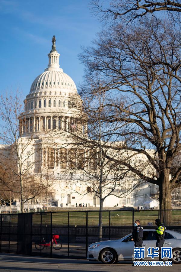 1月7日,在美國首都華盛頓,安保人員在國會大廈附近警戒。新華社記者 劉杰 攝