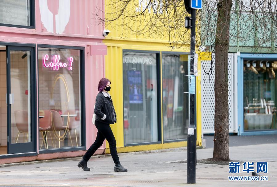 1月19日,一名戴口罩的女子在英國倫敦街頭行走。