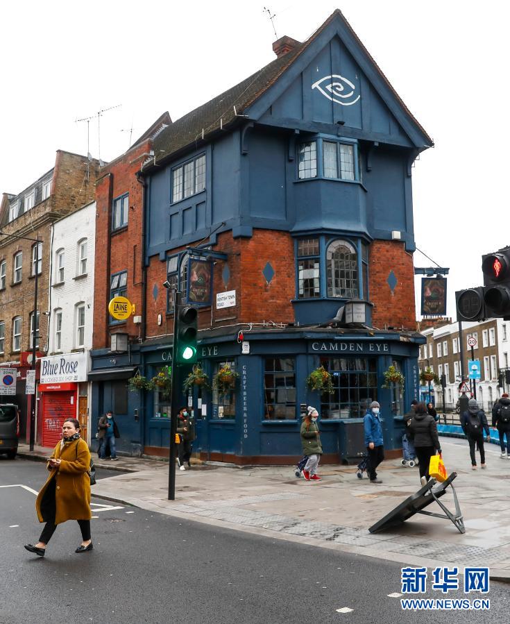 1月19日,戴口罩的人們在英國倫敦一家關閉的酒吧前行走。