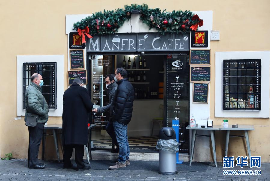 1月19日,人們在意大利首都羅馬的咖啡店購買外帶咖啡。 根據意大利衛生部19日公布的新冠疫情數據,該國累計新冠確診病例2400598例。 新華社記者程婷婷攝