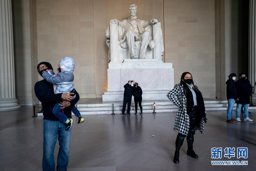 1月23日,佩戴口罩的游客在美國華盛頓林肯紀念堂游覽。 根據美國約翰斯·霍普金斯大學于美國當地時間24日7時22分發布的新冠疫情統計數據,美國累計新冠確診病例達24995606例。 新華社記者 劉杰 攝