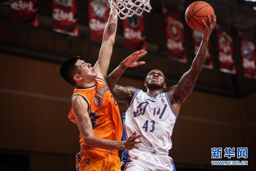 1月25日,四川五糧金樽隊(duì)球員亨特(右)在比賽中上籃。