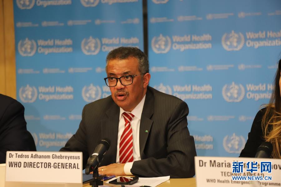 2020年3月11日,在瑞士日內瓦,世界衛生組織總干事譚德塞在例行記者會上發言。譚德塞說,新冠肺炎疫情從特征上可稱為大流行。新華社記者 陳俊俠 攝