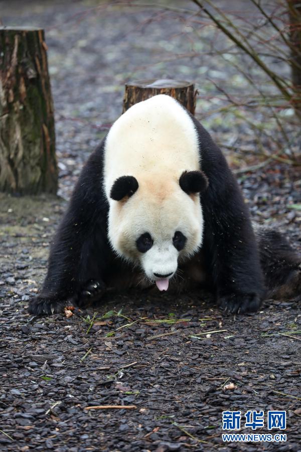 1月27日,大熊貓“天寶”在比利時布呂熱萊特天堂動物園進食。