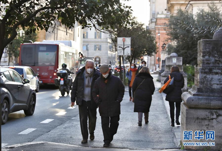 1月27日,人們戴著口罩走在意大利首都羅馬街頭。 根據意大利衛生部于當地時間27日公布的數據,過去24小時意大利新增新冠確診病例15204例,累計確診2501147例。 新華社記者程婷婷攝