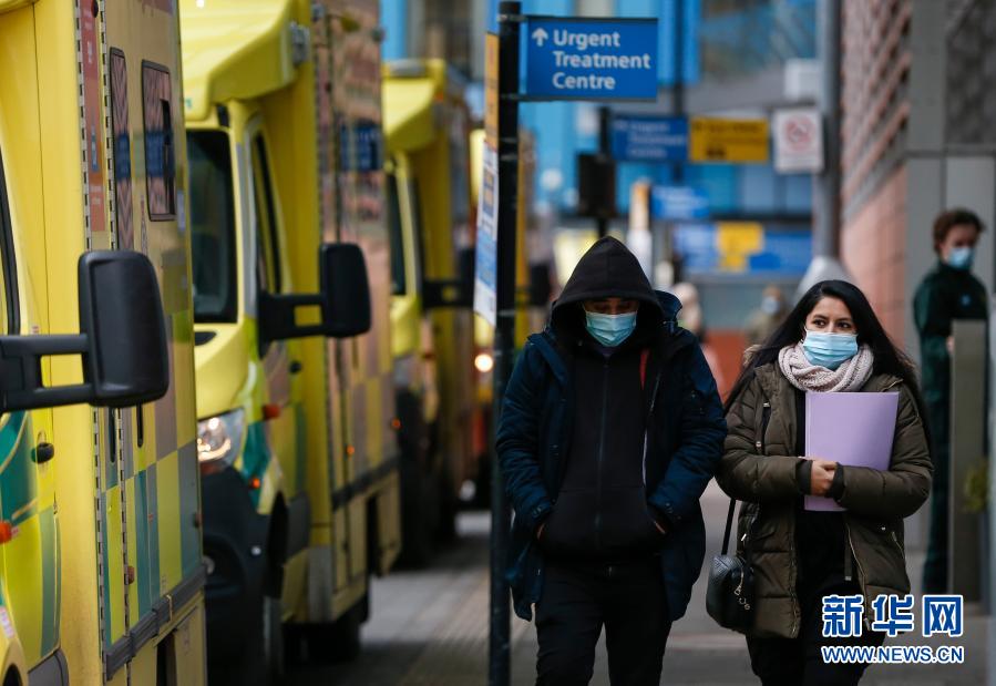 1月26日,戴口罩的行人走過英國倫敦的皇家倫敦醫院。 英國政府26日發布的數據顯示,該國當天新增新冠死亡病例1631例,累計死亡病例100162例。數據還顯示,英國當天新增確診病例20089例,累計確診病例3689746例。 新華社記者韓巖攝