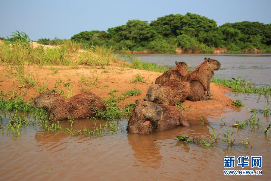 水豚棲息在南美洲中部潘塔納爾濕地(2015年12月5日攝)。