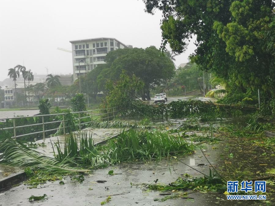 這是1月31日在斐濟蘇瓦街頭拍攝的被吹倒的樹枝。