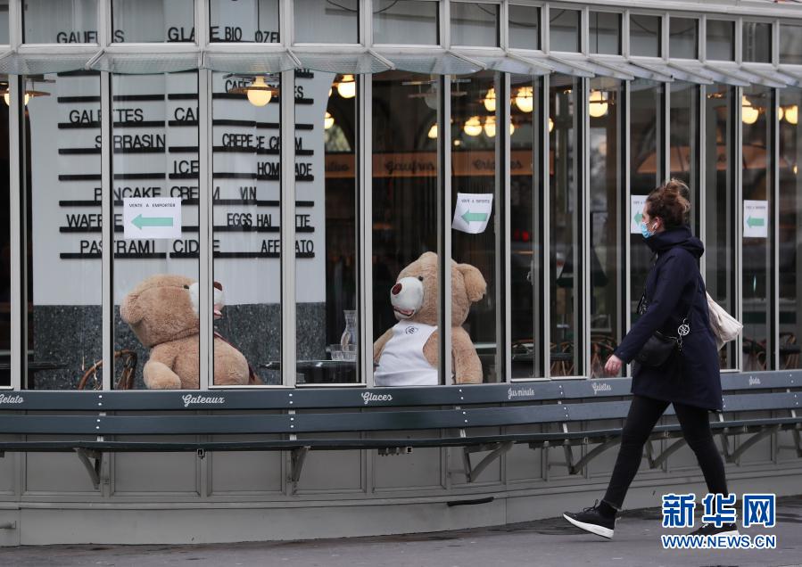 2月3日,一名女子走過法國巴黎街頭一家關門的餐館。新華社記者 高靜 攝