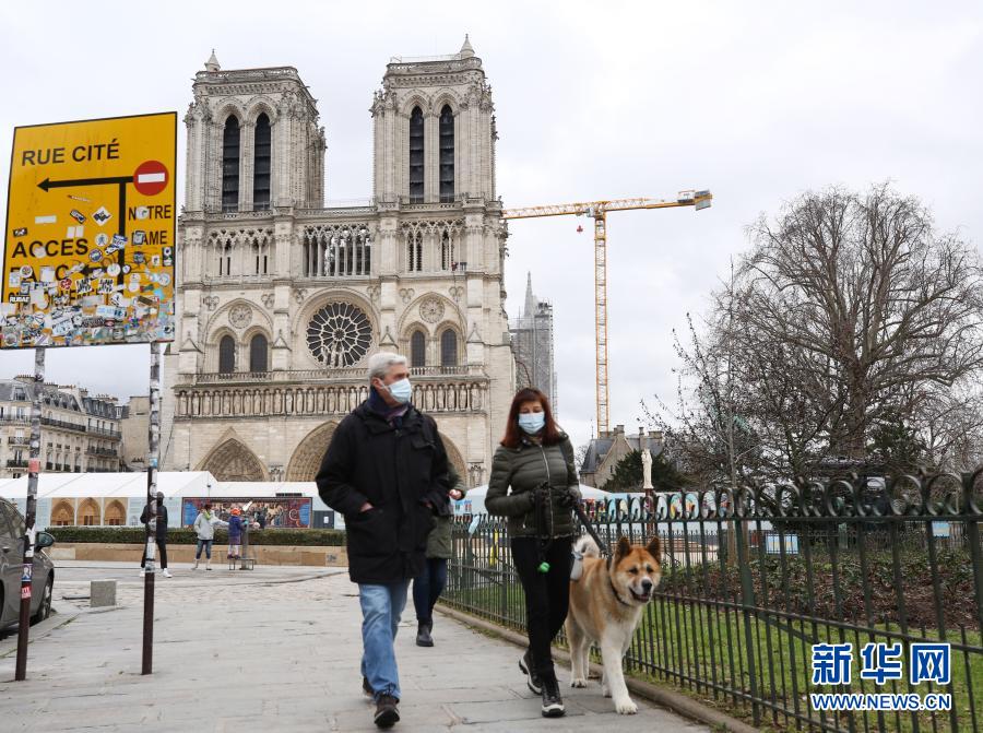 2月3日,人們走過法國巴黎圣母院。 法國衛生部3日的最新數據顯示,法國在過去24小時內新增新冠確診病例26362例。法國政府新聞發言人加布里埃爾·阿塔爾當天表示,法國疫情形勢尚可控,第三輪“封城”并非不可避免。 新華社記者 高靜 攝
