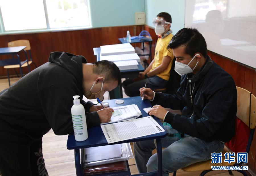 2月7日,選民佩戴口罩在厄瓜多爾基多的一處投票站填寫資料。 厄瓜多爾7日舉行總統和國民代表大會(議會)選舉,1309萬選民將投票選出新一屆總統和國民代表大會議員。為避免民眾大規模聚集增加感染風險,厄全國選舉委員會規定,投票當天進入投票點的選民須佩戴口罩、進行手部消毒而且相互之間必須保持2米以上的安全距離。此外,厄政府還提倡選民根據身份證尾號按建議時段到投票站投票。 新華社記者 郝云甫 攝
