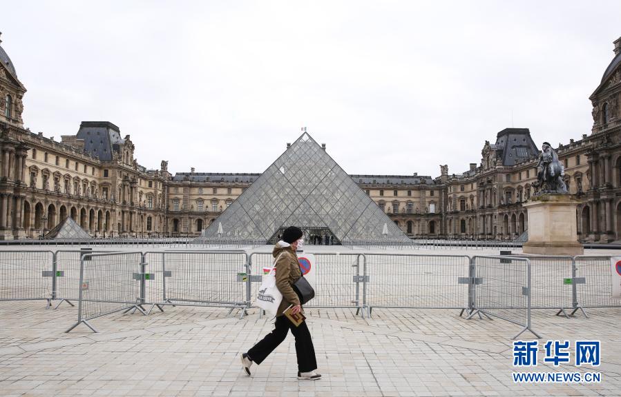 2月19日,行人走過因疫情而關閉的法國巴黎盧浮宮博物館。