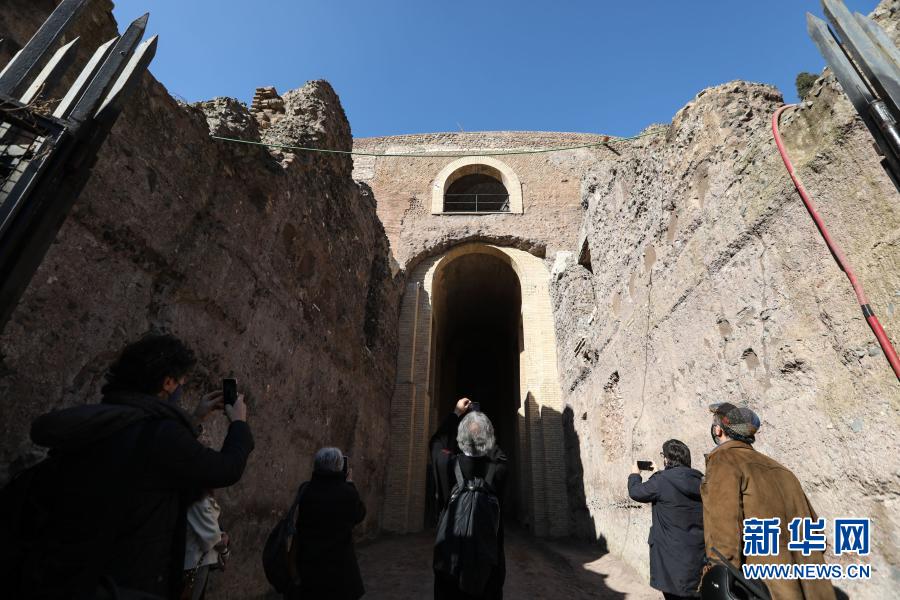 3月1日,記者們拍攝意大利羅馬的奧古斯都陵墓入口。