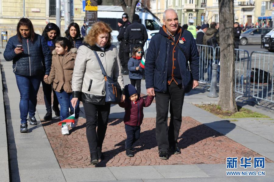 3月3日,民眾來到保加利亞索非亞無名戰士紀念碑前參觀。 3月3日是保加利亞國慶日。當天,一些民眾來到保加利亞索非亞無名戰士紀念碑前參觀并獻花。 新華社記者 孫毅飛 攝