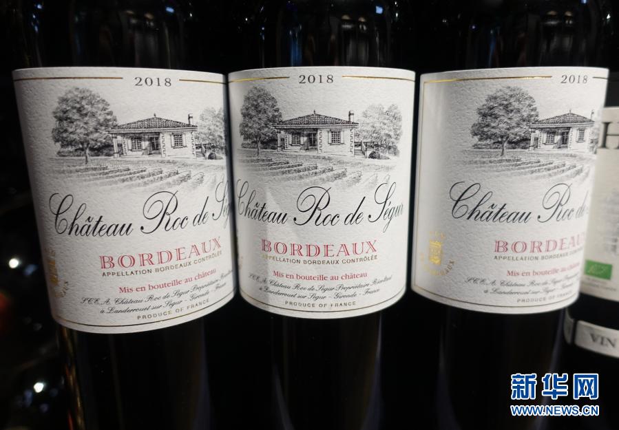 這是3月2日在法國巴黎商店內拍攝的一款波爾多葡萄酒。法國的波爾多葡萄酒是中歐地理標志協定中首批受保護的歐盟地理標志產品。