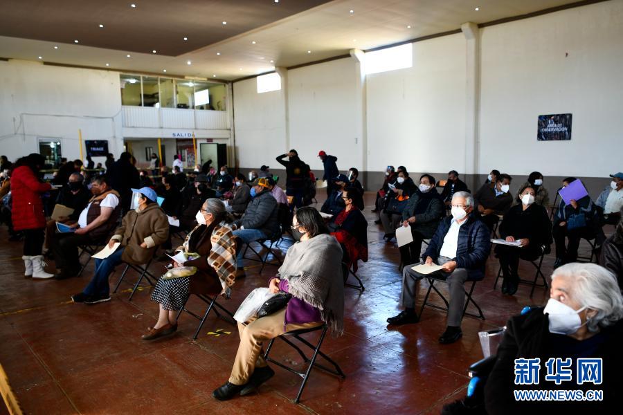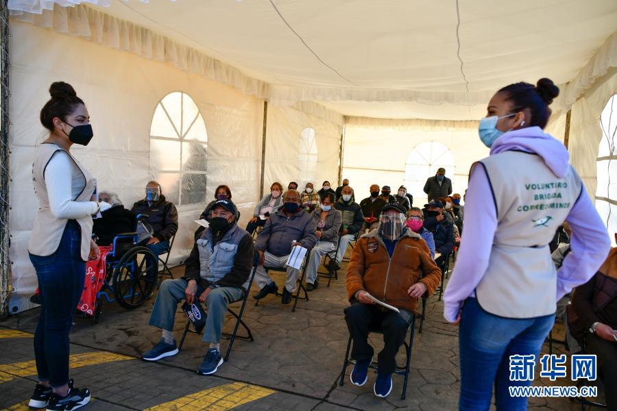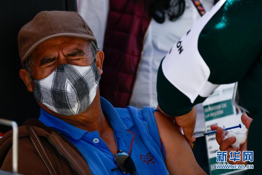 3月9日,墨西哥伊達爾戈州阿卡克索奇特蘭的居民在一處新冠疫苗接種點接種疫苗。 墨西哥伊達爾戈州小城阿卡克索奇特蘭9日開始接種中國科興新冠疫苗,當地首批接種人群為60歲及以上的老年人。 新華社記者 辛悅衛 攝