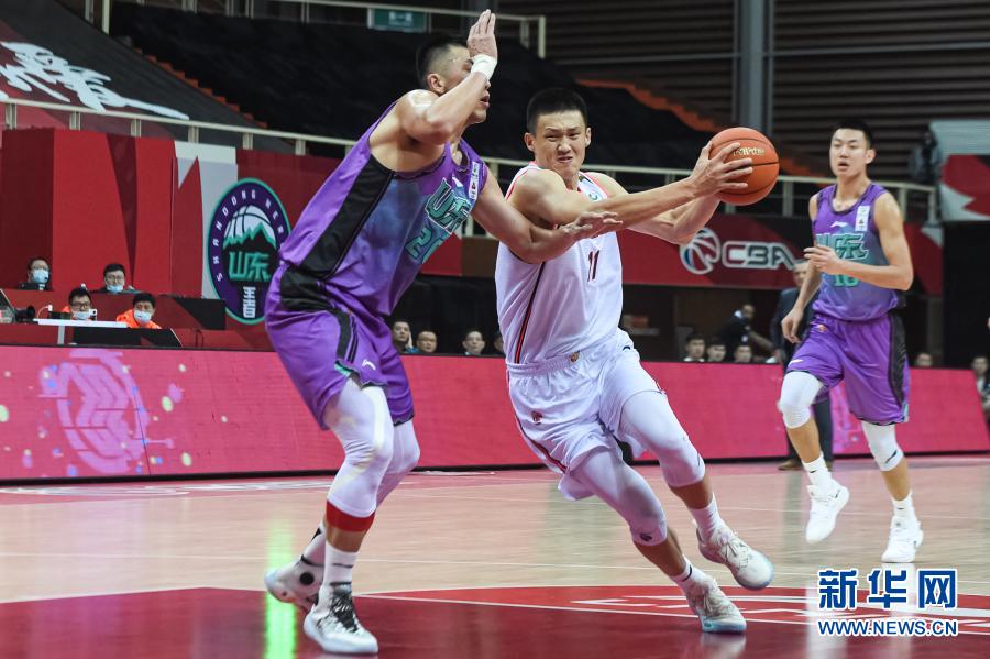 3月10日,廣東東莞大益隊球員布魯克斯(左)在比賽中突破山東西王隊球員陳培東的防守。 當日,在浙江諸暨舉行的2020-2021賽季中國男子籃球職業聯賽(CBA)第三階段第44輪比賽中,廣東東莞大益隊以104比90戰勝山東西王隊。 新華社記者 江漢 攝