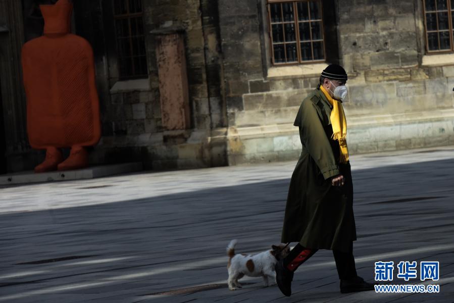 3月18日,戴口罩的市民走在奧地利維也納街頭。