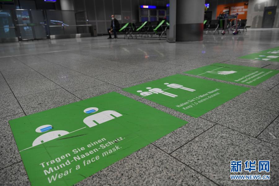 這是3月18日在德國法蘭克福機(jī)場拍攝的防疫宣傳標(biāo)志。