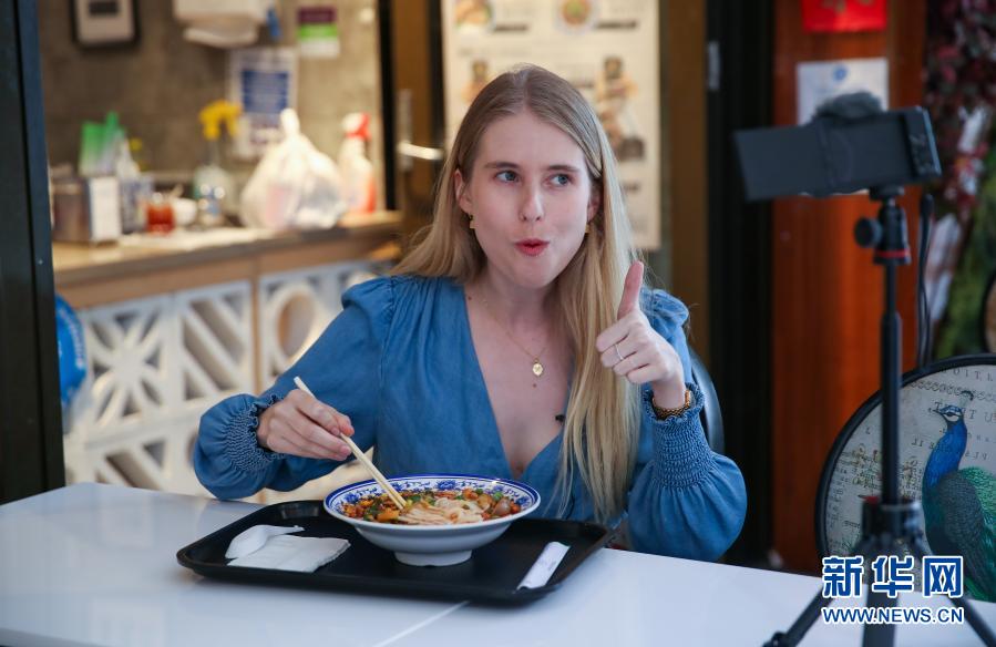 3月16日,艾米在澳大利亞悉尼唐人街制作自己的美食視頻日記。新華社記者 白雪飛 攝