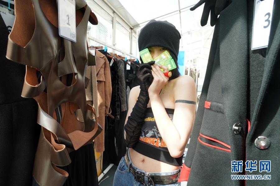 3月24日,一名參展商在DHUB設計匯現場展示參展時裝。